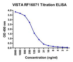 - Titration curve analysis of VISTA antibody to detect recombinant VISTA in ELISA at decreasing concentrations.