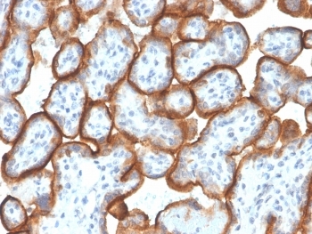 - IHC staining of FFPE human placenta with VISTA antibody (clone VISTA/3007). HIER: boil tissue sections in pH 9, 10mM Tris with 1mM EDTA, 10-20 min and allow to cool before testing.