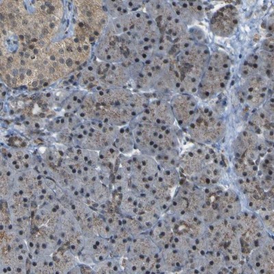 - Immunohistochemistry-Paraffin: ACBD5 Antibody [NBP1-85145] - Staining of human kidney shows moderate granular cytoplasmic positivity in cells in tubules.