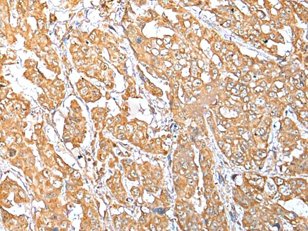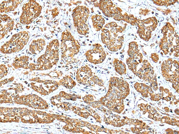 - Immunohistochemical analysis of NDUFB10 in paraffin embedded Human breast cancer tissue using NDUFB10 Polyclonal Antibody (Product # PA5-51179) at a 1:35 dilution.