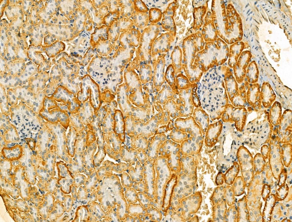 - Immunohistochemistry analysis of VPS16 in mouse kidney tissue. The sample was formaldehyde fixed and a heat mediated antigen retrieval step in citrate buffer was performed. Samples were incubated with VPS16 polyclonal antibody (Product # PA5-100086) using a dilution of 1:100 (4°C overnight) followed by HRP conjugated anti-Rabbit secondary antibody.