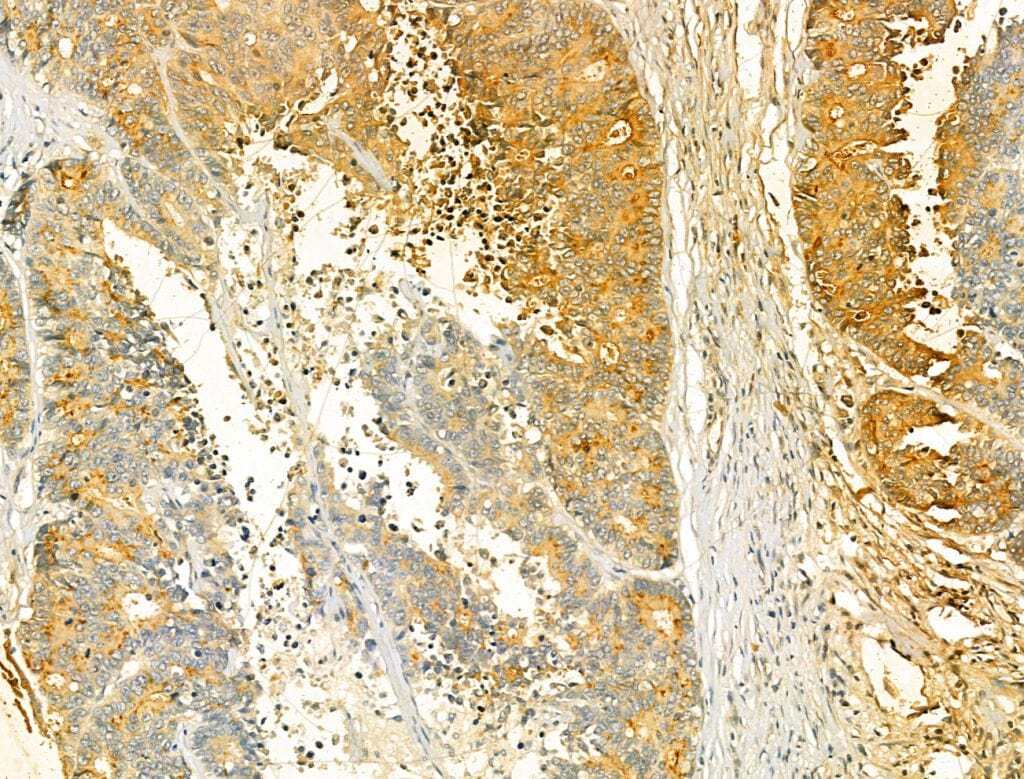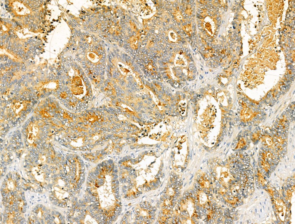 - Immunohistochemistry analysis of VPS16 in human colorectal cancer. The sample was formaldehyde fixed and a heat mediated antigen retrieval step in citrate buffer was performed. Samples were incubated with VPS16 polyclonal antibody (Product # PA5-100086) using a dilution of 1:100 (4°C overnight) followed by HRP conjugated anti-Rabbit secondary antibody.