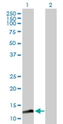 - Western Blot: Mago nashi homolog 2 Antibody [H00055110-B01P] - Analysis of MAGOHB expression in transfected 293T cell line by MAGOHB polyclonal antibody. Lane 1: FLJ10292 transfected lysate(16.28 KDa). Lane 2: Non-transfected lysate.