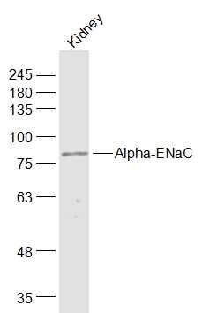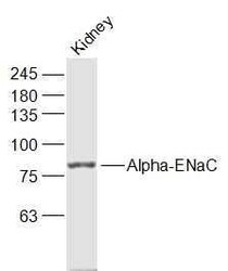 - Mouse kidney lysate at 40µg; Probed with Alpha-ENaC Polyclonal Antibody, Unconjugated (bs-2957R) at 1:1000 overnight at 4°C followed by incubation with a conjugated secondary antibody at 1:20000 for 60 minutes at 37°C.