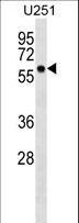 - BTN3A3 Antibody western blot of U251 cell line lysates (35 ug/lane). The BTN3A3 antibody detected the BTN3A3 protein (arrow).