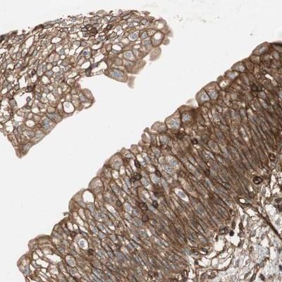 - Immunohistochemistry-Paraffin: BTN3A3 Antibody [NBP1-88509] - Staining of human urinary bladder shows strong cytoplasmic and membranous positivity in urothelial cells.