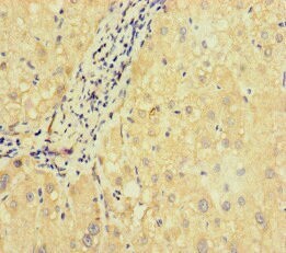 - Immunohistochemical analysis of SLC38A9 in paraffin embedded human liver tissue using a SLC38A9 polyclonal antibody (Product # PA5-98670) at a dilution of 1:100.