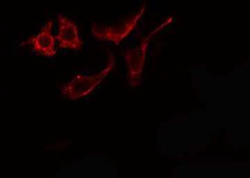 - Immunofluorescent analysis of Arylsulfatase E in HeLa cells. Samples were fixed with paraformaldehyde, permeabilized with 0.1% Triton X-100, blocked with 10% serum (45 min at 25°C) incubated with Arylsulfatase E polyclonal antibody (Product # PA5-106606) using a dilution of 1:200 (1 hr, 37°C), and followed by goat anti-rabbit IgG Alexa Fluor 594 at a dilution of 1:600.