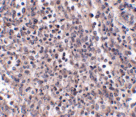 - Immunohistochemistry of EBI3 in human spleen tissue with EBI3 Antibody at 2.5 ?/ml.
