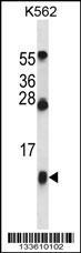 - HBG1 Antibody (Center) (Cat. #AP13696c) western blot analysis in K562 cell line lysates (35ug/lane).This demonstrates the HBG1 antibody detected the HBG1 protein (arrow).