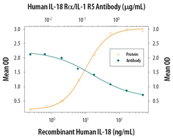 - Protein A or G purified from hybridoma culture supernatant. Detects Recombinant Human IL-18 R alpha/IL-1 R5 in direct ELISAs. In direct ELISAs, no cross-reactivity with recombinant human (rh) IL-1 RI, rhIL-1 RII, rhIL-1 R3, rhIL-1 R4, rhIL-1 R6, rhIL-1 R7, rhIL-1 R8, rhIL-1 R9, rhSIGIRR or recombinant mouse IL-18 R alpha is observed.