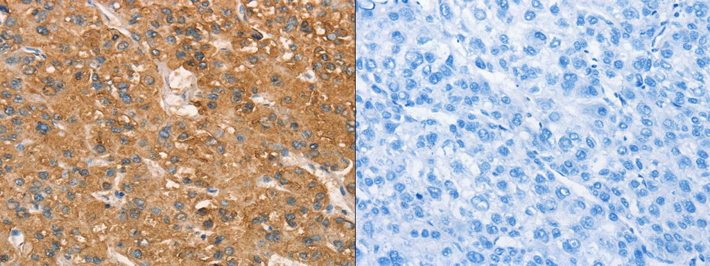 - The image on the left is immunohistochemistry of paraffin-embedded Human liver cancer tissue using (ART4 Antibody) at dilution 1/50, on the right is treated with synthetic peptide. (Original magnification: ?200)