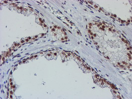 - Immunohistochemical staining of paraffin-embedded Carcinoma of Human prostate tissue using anti-NLN mouse monoclonal antibody. (Heat-induced epitope retrieval by 10mM citric buffer, pH6.0, 100C for 10min, TA504160)
