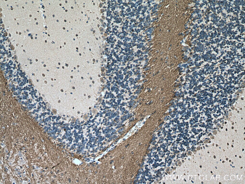 - Immunohistochemical analysis of paraffin-embedded mouse cerebellum tissue slide using 67077-1-Ig (APBB1 antibody) at dilution of 1:200 (under 10x lens). Heat mediated antigen retrieval with Tris-EDTA buffer (pH 9.0).