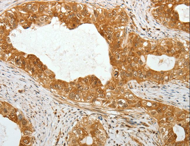 - Immunohistochemistry of paraffin-embedded Human cervical cancer using TEKT1 Polyclonal Antibody at dilution of 1:30.