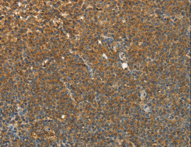 - Immunohistochemistry of paraffin-embedded Human lymphoma using TEKT1 Polyclonal Antibody at dilution of 1:30.