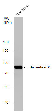 - Rat tissue extract (50 ?g) was separated by 7.5% SDS-PAGE, and the membrane was blotted with Aconitase 2 antibody [N1N3] (GTX114233) diluted at 1:10000. The HRP-conjugated anti-rabbit IgG antibody (GTX213110-01) was used to detect the primary antibody.