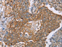 - Immunohistochemistry of paraffin-embedded Human cervical cancer using PAICS Polyclonal Antibody at dilution of 1:50.