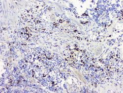 - IHC analysis of RRBP1 using anti-RRBP1 antibody (A07074-1).RRBP1 was detected in paraffin-embedded section of human intestinal cancer tissue. Heat mediated antigen retrieval was performed in citrate buffer (pH6, epitope retrieval solution) for 20 mins. The tissue section was blocked with 10% goat serum. The tissue section was then incubated with 1μg/ml rabbit anti-RRBP1 Antibody (A07074-1) overnight at 4°C. Biotinylated goat anti-rabbit IgG was used as secondary antibody and incubated for 30 minutes at 37°C. The tissue section was developed using Strepavidin-Biotin-Complex (SABC)(Catalog # SA1022) with DAB as the chromogen.