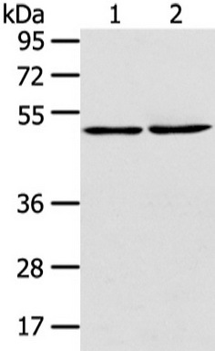 - Gel: 8%SDS-PAGE, Lysate: 40 ug, Lane 1-2: A431 cell and human lung cancer tissue, Primary antibody: (TBC1D22A Antibody) at dilution 1/300 dilution, Secondary antibody: Goat anti rabbit IgG at 1/8000 dilution, Exposure time: 1 minute