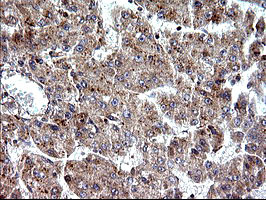 - IHC of paraffin-embedded Carcinoma of Human liver tissue using anti-SHBG mouse monoclonal antibody. (Heat-induced epitope retrieval by 10mM citric buffer, pH6.0, 120°C for 3min).