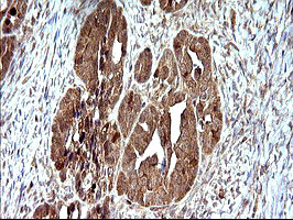 - IHC of paraffin-embedded Adenocarcinoma of Human ovary tissue using anti-SHBG mouse monoclonal antibody. (Heat-induced epitope retrieval by 10mM citric buffer, pH6.0, 120°C for 3min).