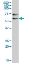 - Western Blot analysis of PVRL2 expression in transfected 293T cell line (H00005819-T01) by PVRL2 MaxPab polyclonal antibody.Lane 1: PVRL2 transfected lysate(52.69 KDa).Lane 2: Non-transfected lysate.