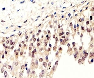 - IHC analysis of FFPE human bladder section using SUMO2/3 antibody; Ab was diluted at 1:100.