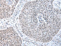 - Immunohistochemical analysis of WRAP53 in paraffin embedded Human lung cancer tissue using WRAP53 Polyclonal Antibody (Product # PA5-51307) at a 1:20 dilution.