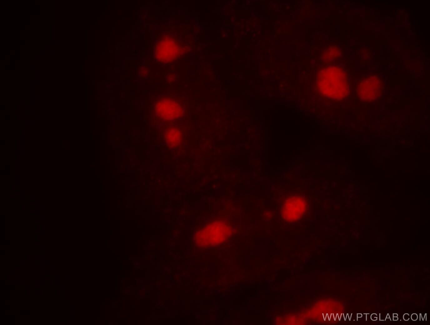 - Immunofluorescent analysis of HepG2 cells, using UTP3 antibody 18886-1-AP at 1:50dilution and Rhodamine-labeled goat anti-rabbit IGG (red).
