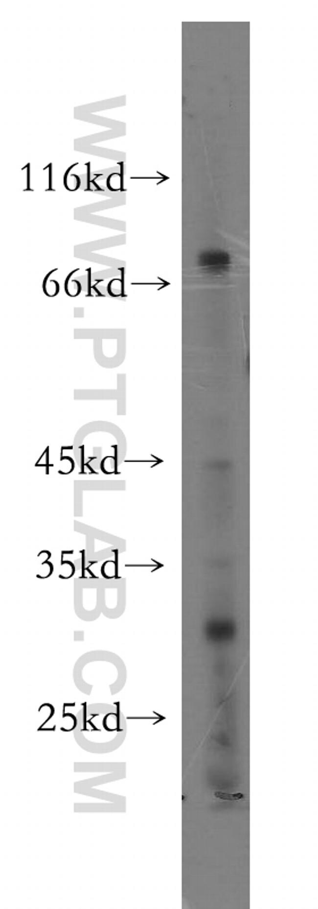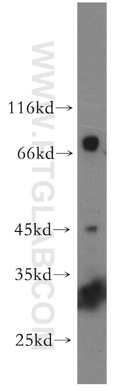 - HeLa cells were subjected to SDS PAGE followed by western blot with 18886-1-AP (UTP3 antibody) at dilution of 1:600 incubated at room temperature for 1.5 hours.