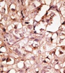 - Formalin-fixed and paraffin-embedded human breast carcinoma reacted with the primary antibody, which was peroxidase-conjugated to the secondary antibody, followed by DAB staining. This data demonstrates the use of this antibody for immunohistochemistry; clinical relevance has not been evaluated.