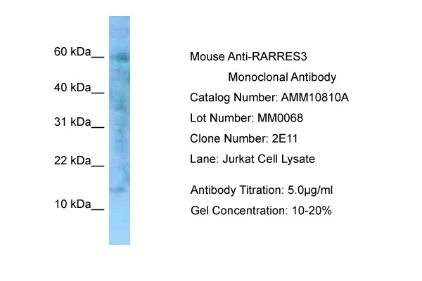 - WB Suggested Anti-RARRES3 Antibody Titration: 5µg/ml. Positive Control: Jurkat Whole Cell