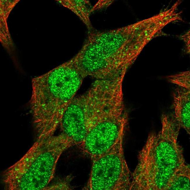 - Immunofluorescent staining of SV2C in human cell line SH-SY5Y shows positivity in cytoplasm, vesicles & nucleus but excluded from the nucleoli. Samples were probed using a SV2C Polyclonal Antibody (Product # PA5-59267).
