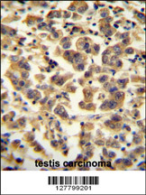 - TTC39B antibody (C-term) immunohistochemistry analysis in formalin fixed and paraffin embedded human testis carcinoma followed by peroxidase conjugation of the secondary antibody and DAB staining. This data demonstrates the use of the TTC39B antibody (C-term) for immunohistochemistry. Clinical relevance has not been evaluated.