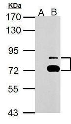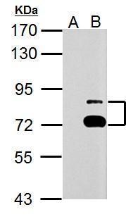 - Sample (5 ug of whole cell lysate) A: Non-transfected 293T lysates B: TTC39B transfected 293T lysates 7.5% SDS PAGE GTX125938 diluted at 1:10000
