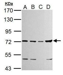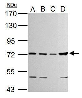- Sample (30 ug of whole cell lysate) A: Raji B: K562 C: THP-1 D: NCI-H929 7.5% SDS PAGE GTX125938 diluted at 1:10000