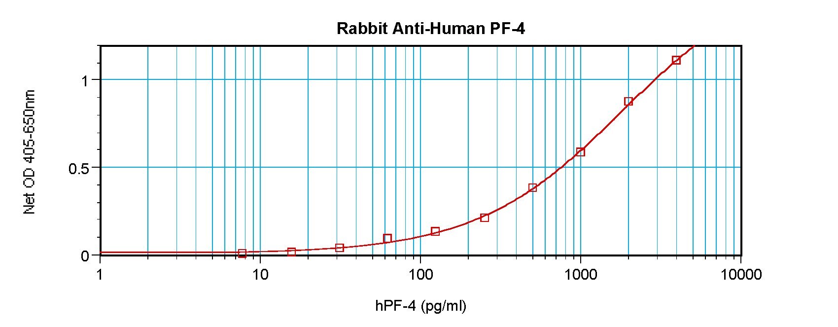 - AA Sequence of recombinant protein: EAEEDGDLQC LCVKTTSQVR PRHITSLEVI KAGPHCPTAQ LIATLKNGRK ICLDLQAPLY KKIIKKLLES. Preparation: Produced from sera of rabbits immunized with highly pure Recombinant Human PF-4 (CXCL4). Anti-Human PF-4 (CXCL4)-specific antibody was purified by affinity chromatography employing an immobilized Human PF-4 matrix. Sandwich ELISA: To detect Human PF-4 (CXCL4) by sandwich ELISA (using 100 µL/well) a concentration of 0.5-2.0 µg/mL of this antibody is required. This antigen affinity purified antibody, in conjunction with PeproTech Biotinylated Anti-Human PF-4 (CXCL4) (500-P05BT) as a detection antibody, allows the detection of at least 2000-4000 pg/mL of Recombinant Human PF-4 (CXCL4). Western Blot: To detect Human PF-4 (CXCL4) by Western Blot analysis this antibody can be used at a concentration of 0.1-0.2 µg/mL. When used in conjunction with compatible secondary reagents the detection limit for Recombinant Human PF-4 (CXCL4) is 1.5-3.0 ng/lane, under either reducing or non-reducing conditions.