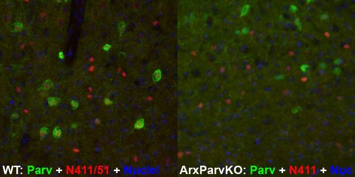 - Immunofluorescence staining of wild-type (WT) and Parvalbumin-specific Arx knockout (ArxParvKO) mouse brains. Images courtesy of Eric Marsh (Childrens Hospital of Philadelphia).