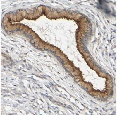 - Immunohistochemistry-Paraffin: Myoferlin Antibody [NBP1-84694] - Staining of human prostate shows moderate to strong membranous positivity in glandular cells.