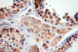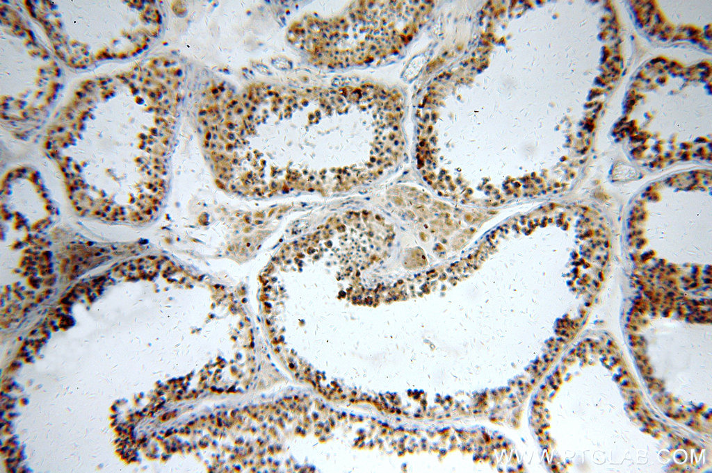 - Immunohistochemical of paraffin-embedded human testis using 20374-1-AP(USP50 antibody) at dilution of 1:50 (under 10x lens)