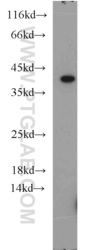 - mouse brain tissue were subjected to SDS PAGE followed by western blot with 20374-1-AP(USP50 antibody) at dilution of 1:300