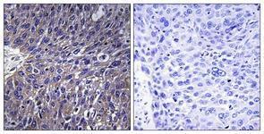 - Immunohistochemistry analysis of paraffin-embedded human lung carcinoma tissue, using USP50 Antibody. The picture on the right is treated with the synthesized peptide.