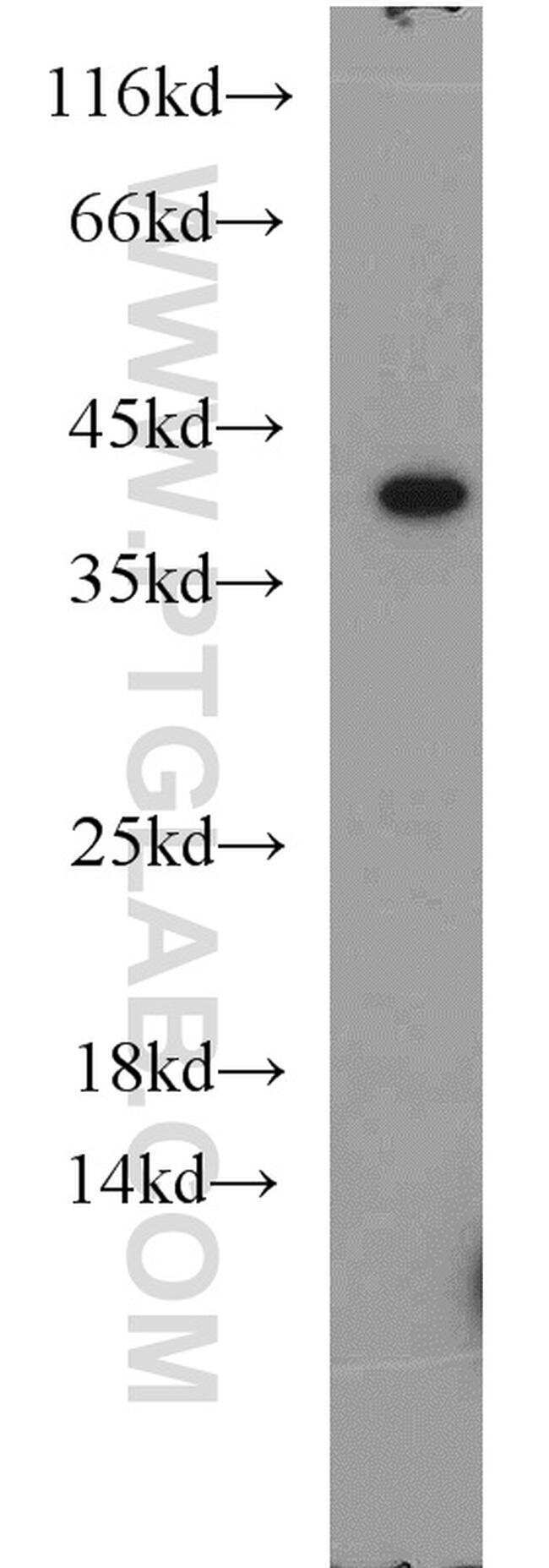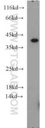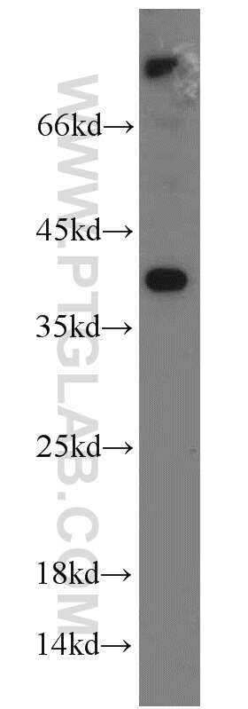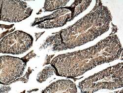 - Mouse testis tissue were subjected to SDS PAGE followed by western blot with 20374-1-AP (USP50 antibody) at dilution of 1:100 incubated at room temperature for 1.5 hours.