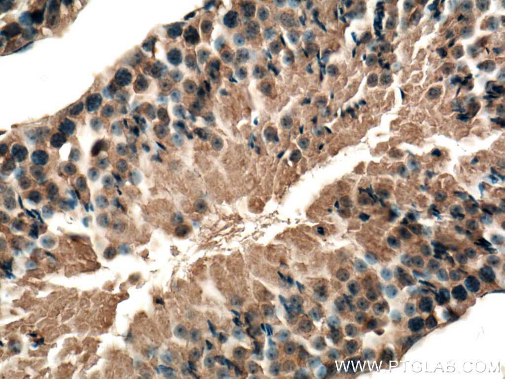 - Immunohistochemistry of paraffin-embedded mouse testis tissue slide using 20374-1-AP (USP50 antibody) at dilution of 1:200 (under 40x lens) heat mediated antigen retrieved with Tris-EDTA buffer (pH 9).