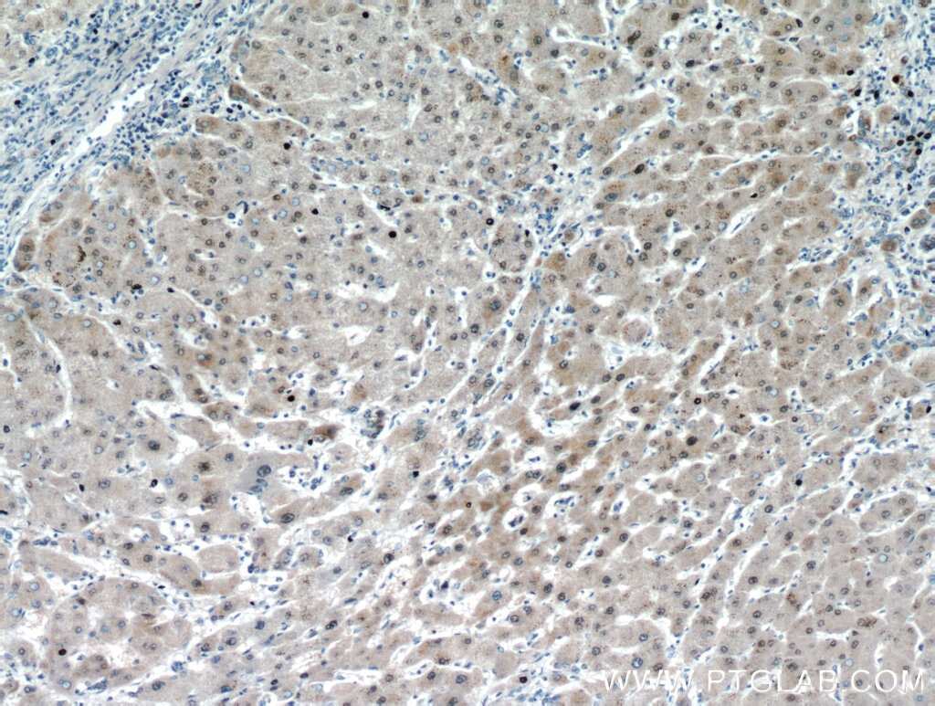 - Immunohistochemistry of paraffin-embedded human hepatocirrhosis using 20374-1-AP (USP50 antibody) at dilution of 1:50 (under 10x lens).