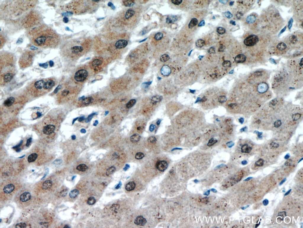 - Immunohistochemistry of paraffin-embedded human hepatocirrhosis using 20374-1-AP (USP50 antibody) at dilution of 1:50 (under 40x lens).
