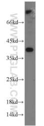 - Mouse brain tissue were subjected to SDS PAGE followed by western blot with 20374-1-AP (USP50 antibody) at dilution of 1:300 incubated at room temperature for 1.5 hours.
