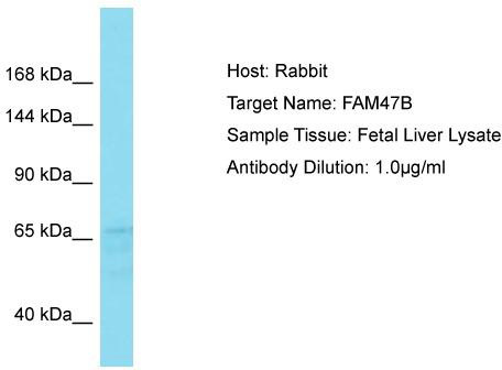 - Host: Rabbit; Target Name: FAM47B; Sample Tissue: Fetal Liver lysates; Antibody Dilution: 1.0 ug/ml