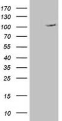 - HEK293T cells were transfected with the pCMV6-ENTRY control (Left lane) or pCMV6-ENTRY ERCC4 (Right lane) cDNA for 48 hrs and lysed. Equivalent amounts of cell lysates (5 ug per lane) were separated by SDS-PAGE and immunoblotted with anti-ERCC4.